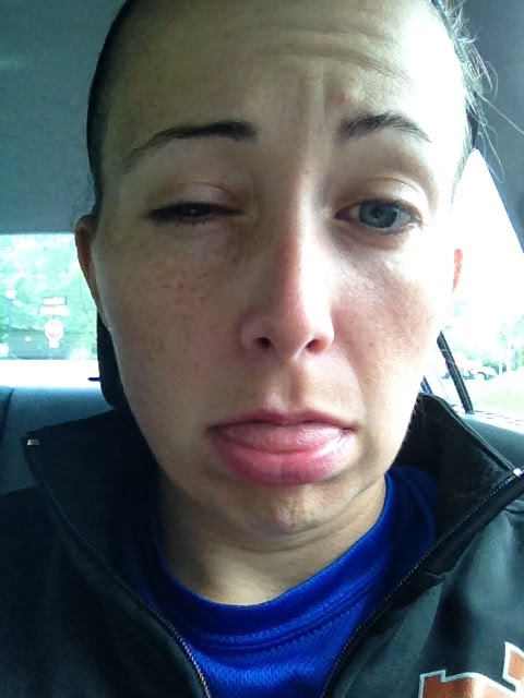 The run went similar to the bike. Just tried to keep an even pace and not wear myself down by blasting up the first few hills. I felt better than I EVER ever have in an olympic run. Steady, even, and solid stomach. On that hilly bia of a course, I consider that on par with winning my age group :) I had a song stuck in my head that the dudebaby and I learned in our last play group, and it carried me through the whole race. I had an inkling that I wasn't going to PR, but couldn't care in the least. The course was just too gorgeous, and I was having too much fun. I came through the finishing chute with no energy to spare, but still elated. I mean, who can be grumpy when faced with this: